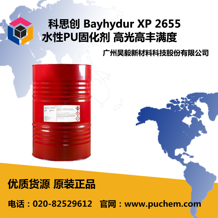 Bayhydur XP 2655是一种适用于水性体系的交联剂;此类水性体系需具有结合稳定性和耐化学品性好的特点。尽管该固化剂的亲水性相对较弱,但在水相下,甚至在商用中常见的低剪切力的情况下,易于乳化。使用该产品制备而成的涂料可形成高光低雾影膜。